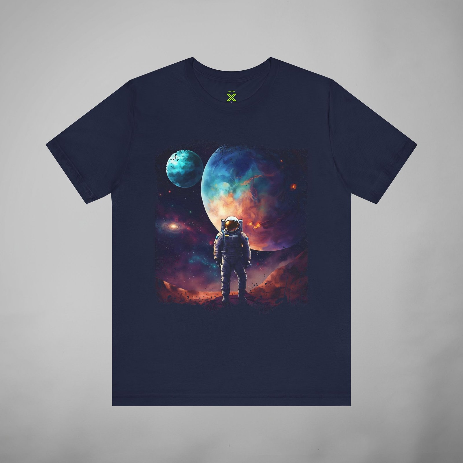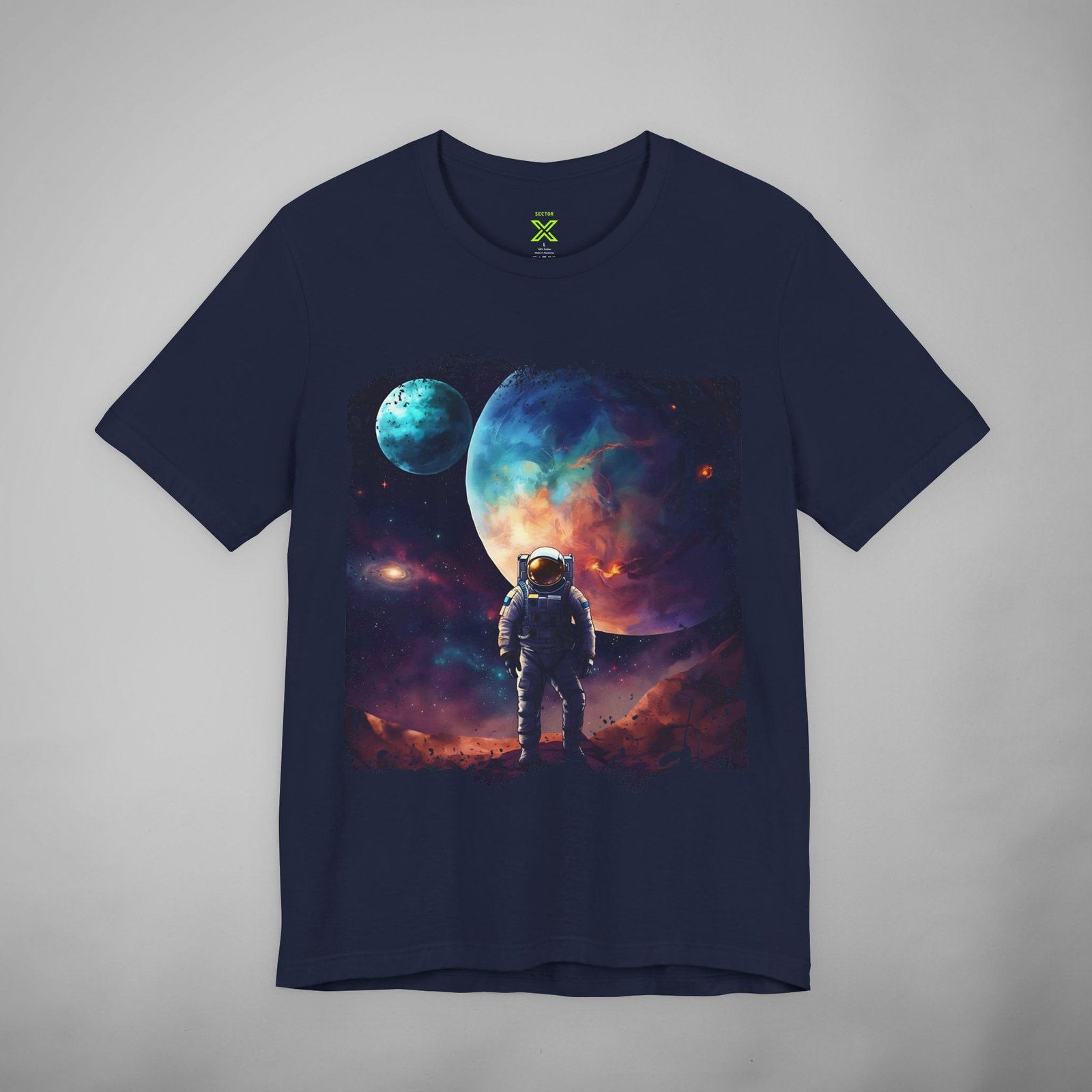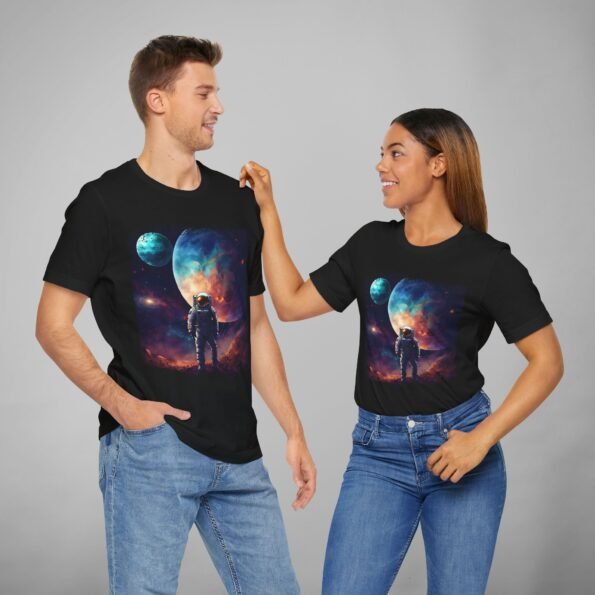 This T-shirt features a striking astronaut in space design, perfect for fans of outer space and sci-fi. The lightweight fabric and retail fit make it ideal for casual wear and layering. This T-shirt is perfect for adults and is REACH Certified.