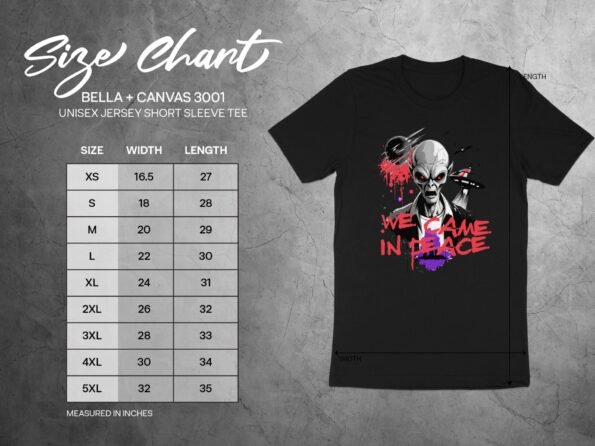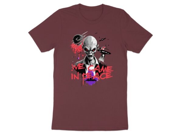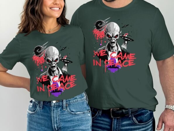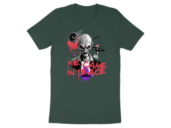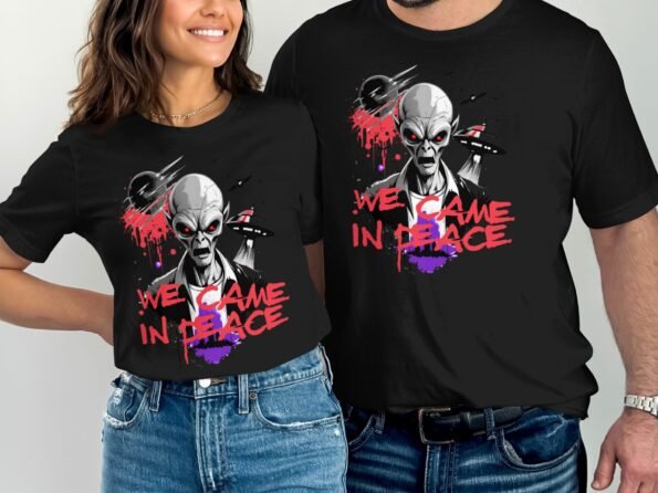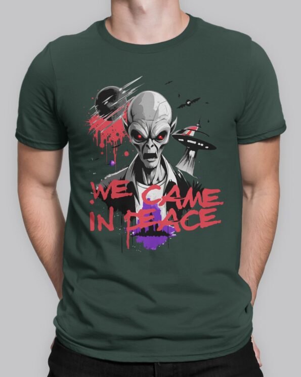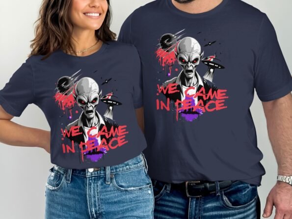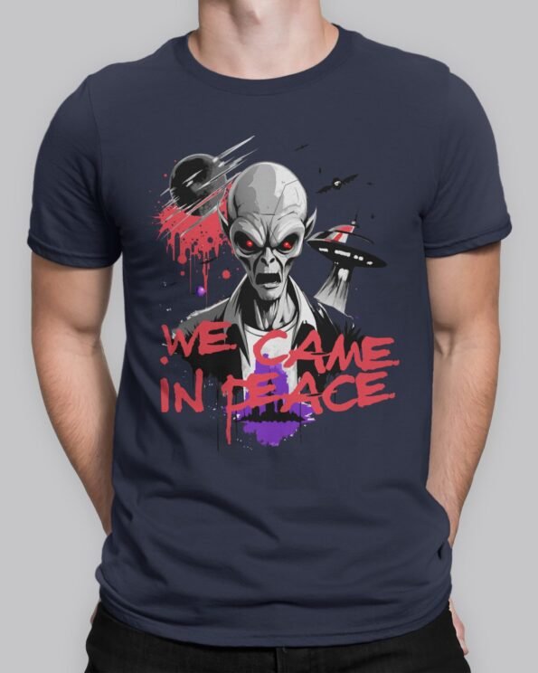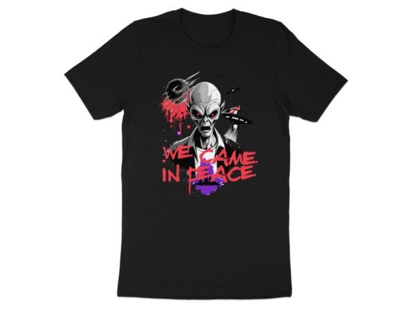 Be the first to review “We Came in Peace with Scary Alien Design Graphic T-Shirt” Cancel reply