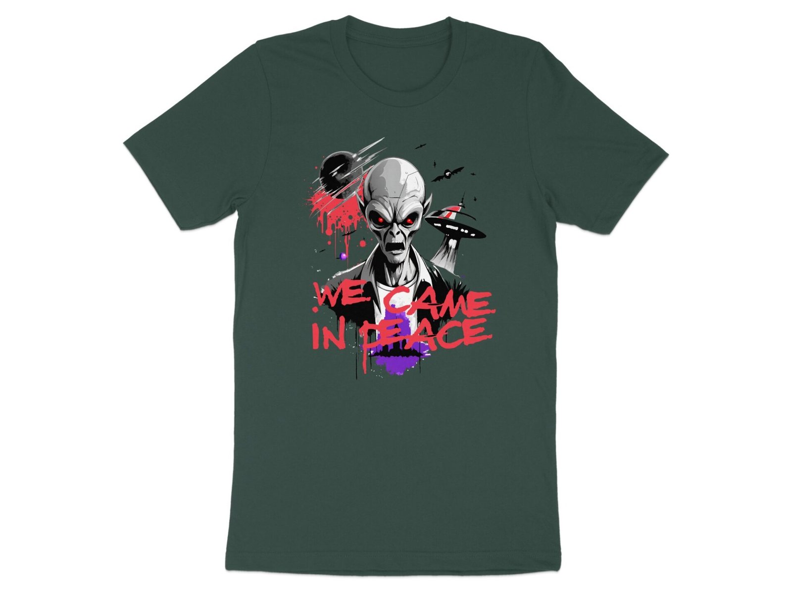 We Came in Peace with Scary Alien Design Graphic T-Shirt